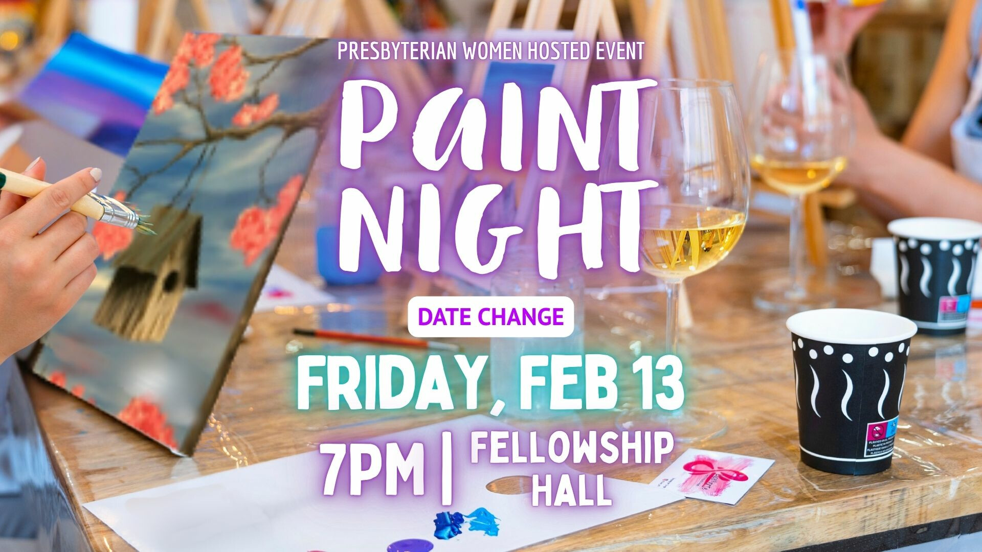 FPC Paint Night sponsored by PW has been rescheduled to Friday, February 13th, 7 to 9 p.m. Bring friends or come alone to enjoy a glass of wine, snacks, and camaraderie while the group copies a provided image, with guidance from an outside artist. $40 registration covers paints, canvas, and artist instruction. Come join the fellowship! No experience required!